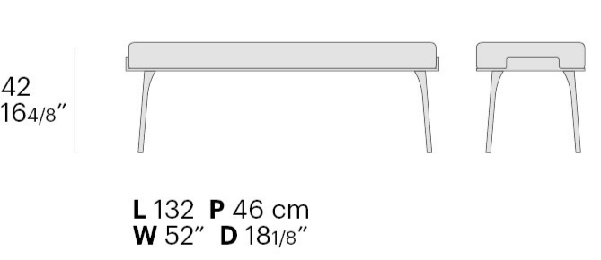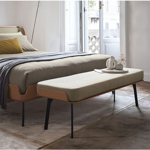 Банкетка воспроизводит мягкие и органичные линии, характерные для кровати Gabri. Она характеризуется кожаной основой, обработанной до мельчайших деталей, обволакивающей удобное сиденье, обтянутое тканью.
