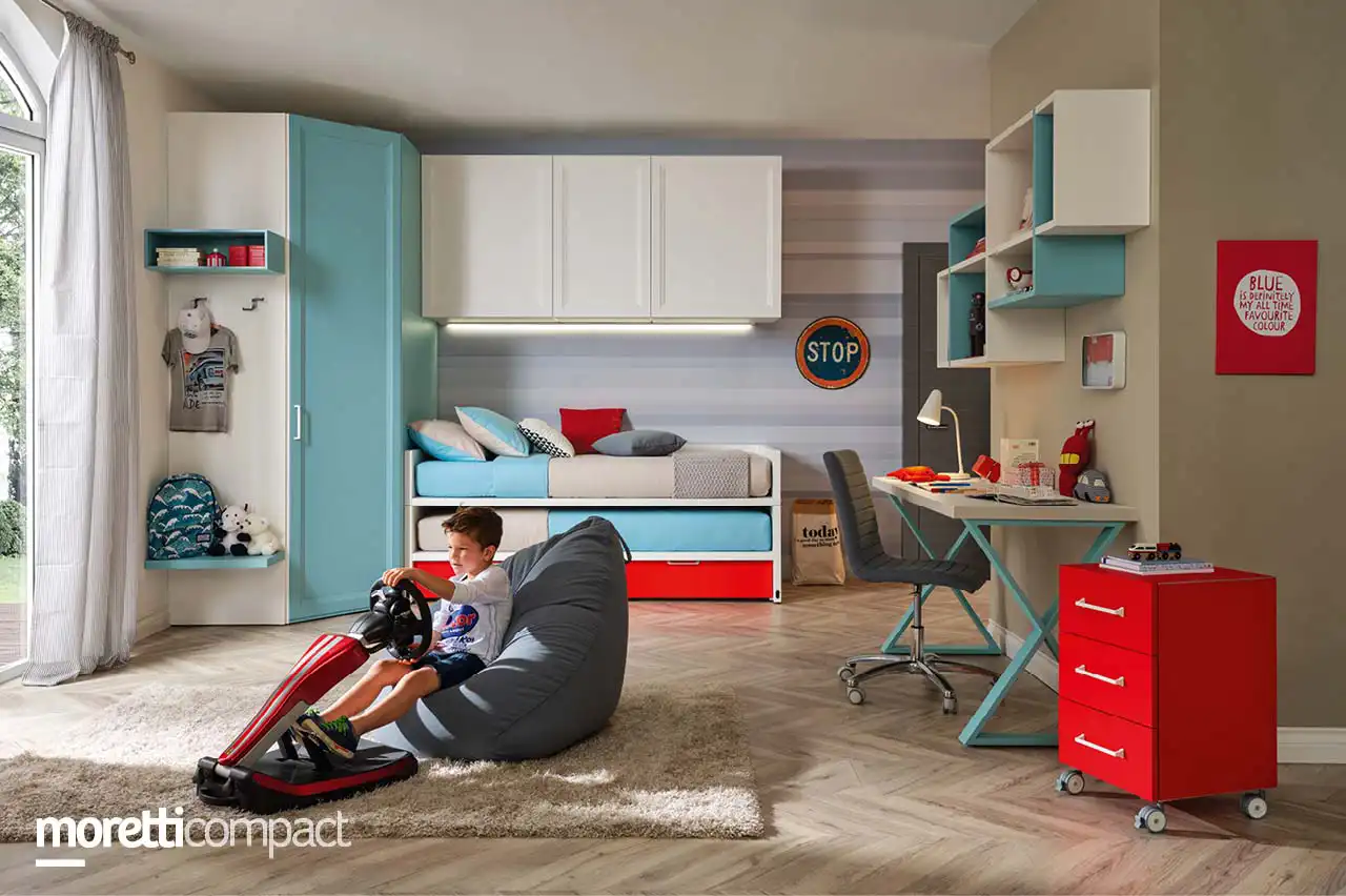 Кровать Space 4 — это компактная кровать, включающая вторую кровать такого же размера. Кровать выдвигается благодаря встроенной ручке. Философия, которой руководствуется каждый проект Moretti Compact, требует, чтобы каждый аксессуар для мебели выполнял свои функции. Одним из результатов стала Space4, кровать, которая трансформируется благодаря двум выдвижным ящикам, которые также доступны с полным выдвижением.