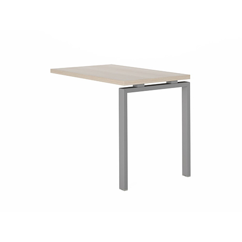 Брифинг-приставка ФЛЭШ: современный дизайн с металлическими опорами и вставками ЛДСП. Доступен в цветах Дуб 131 и Лиственница с серебристым металликом.